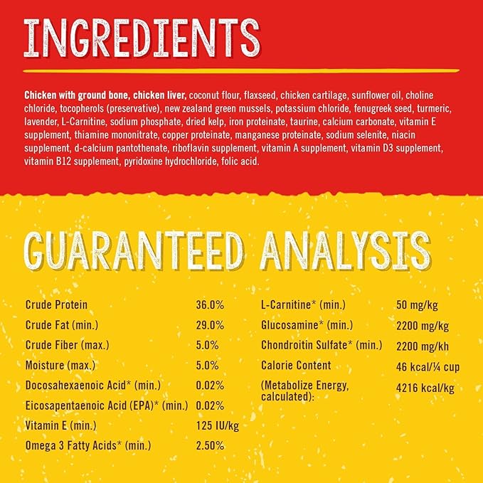 - A Healthy & Tasty Meal Mixer, Supplement or Snack: Made with cage-free chicken, this all-natural, freeze-dried raw recipe is a convenient way to add the power, nutrition and taste of raw to your dog’s diet
