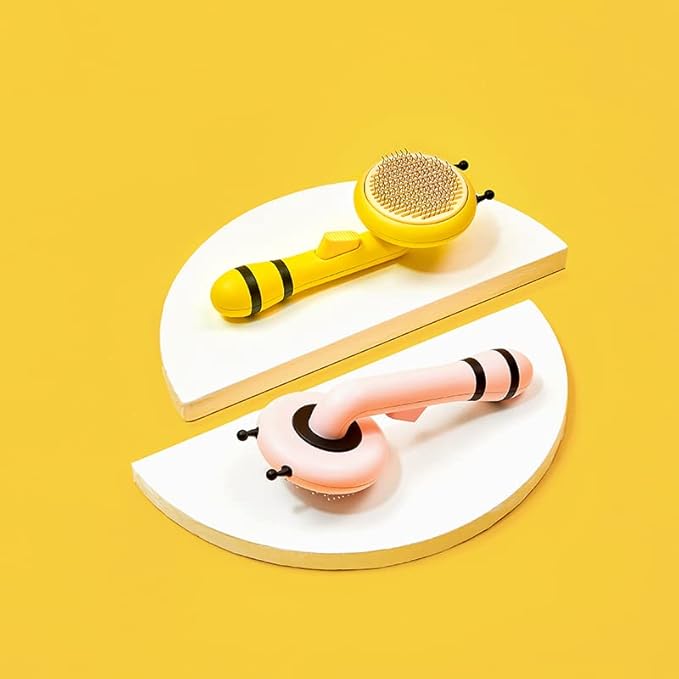 Cat Self Cleaning Slicker Brush, Cat Grooming Brush, Short and Long Haired remover for Dogs and Cats, Slicker Brush Removes Loose Undercoat & Tangled Hair (Bee-pink)