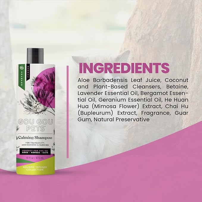 - 16 oz. Holistic Calming Shampoo: Provides a natural aid for dogs, cats, and horses during bath time