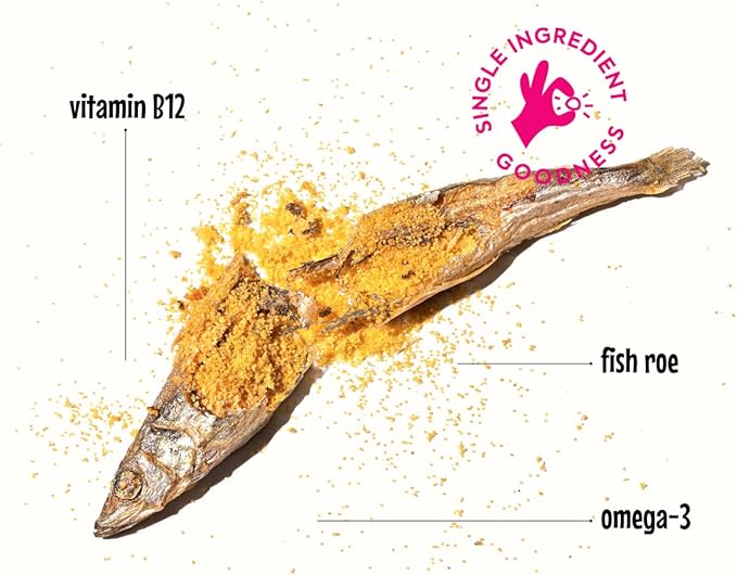 - 100% CAPELINE FISH - 98% of our capeline fish has masago, which is a natural source of nutrients that contain essential fatty acids like Omega 3, Omega 6, Taurine, Calcium, Zinc, and Vitamins A, and D. These nutrients work together to create healthier skin and shinier coats that shed less.