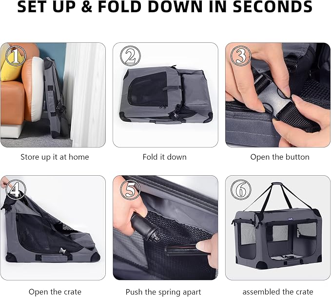 - _turdy & Anti-collision protection_ade with strong & lightweight steel, strong 600D Oxford cloth, and special anti-bite mesh. There are anti-collision protection pads on the four corners to protect the pet cage from wearing and tearing, as well as protect home decoration and car interiors.