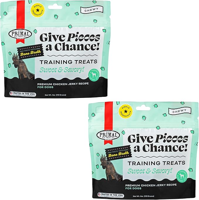 Primal Chicken Jerky Dog Treats Made with Chicken Bone Broth for Dogs, Give Pieces a Chance, Training Treat for Dogs, 4 oz (Pack of 2)
