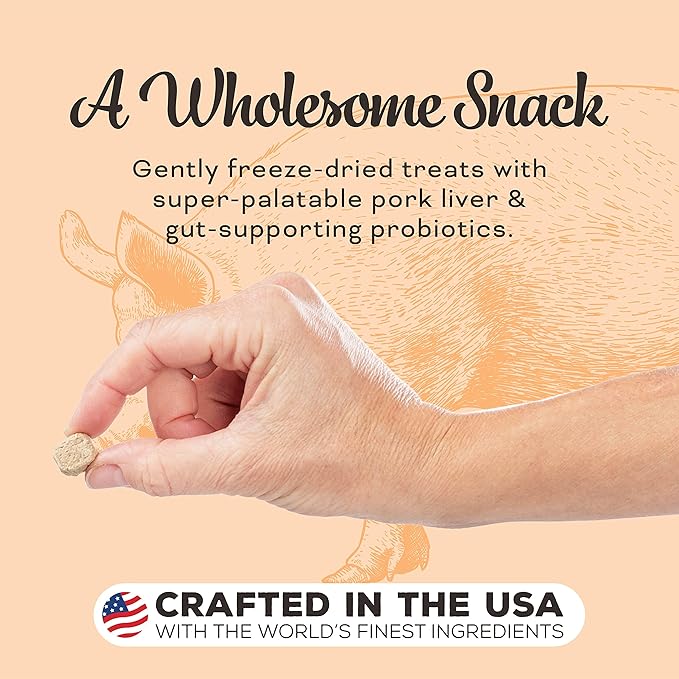 • Premium freeze-dried liver treats for dogs. Made with crate-free pork raised without antibiotics, steroids or added hormones. No grain, corn, wheat, or soy