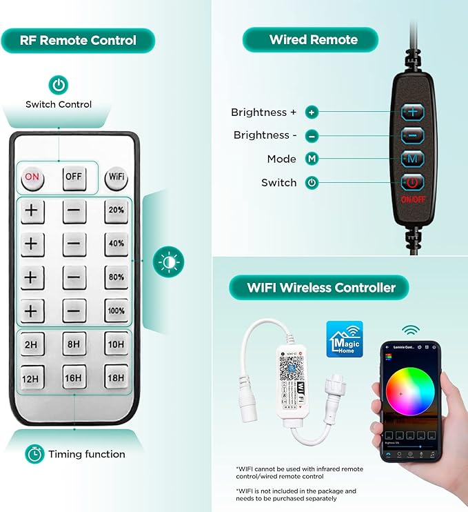 - REMOTE SETTING: Lominie Asta 20 aquarium plant light with remote control, you can set up the effects you want at anytime, can also be manually switched, makes your aquarium and the fish more beautiful. And you also use smart device to set the light mode. Please note: you need to order the WIFI controller separately