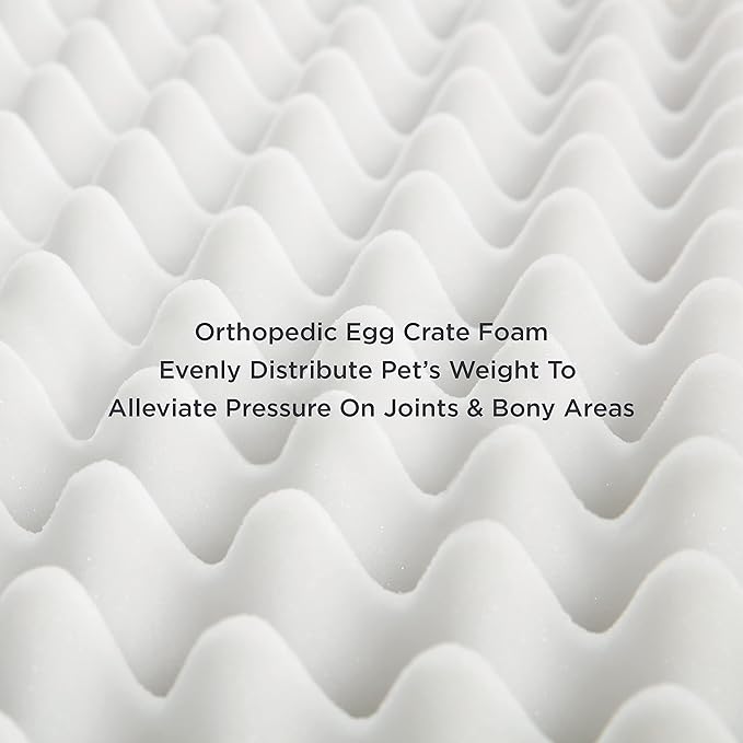- Orthopedic Support: Designed to give your pet unparalleled support for a deep, dreamy sleep. High-density egg-crate foam distributes weight evenly and provides the perfect amount of pressure relief to reduce joint pain and arthritis discomfort.