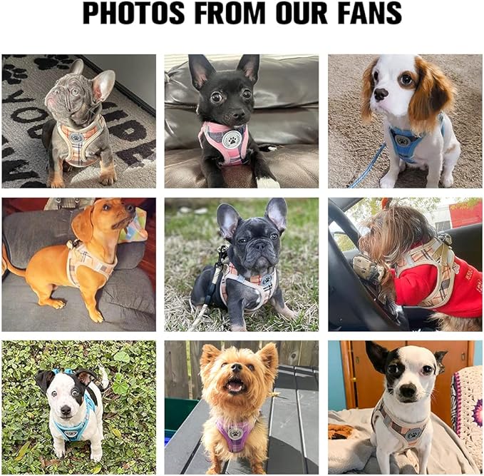 - _Comfortable and Reflective ---Adjustable dog harness features colorful plaid and breathable mesh fabric, comfortable to wear and will not stick to the dog??s hair. Reflective strips deign reflect ambient light in low light conditions, making you and your dog safer when walking and moving around at night without worrying about blurred vision in the dark.