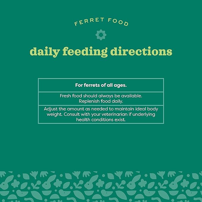 - WHOLE BODY HEALTH: Provides 100% of your ferret’s daily recommended vitamins and minerals, supporting their overall health, strong immunity, healthy growth, and vibrant energy levels; a complete diet designed for active, happy ferrets