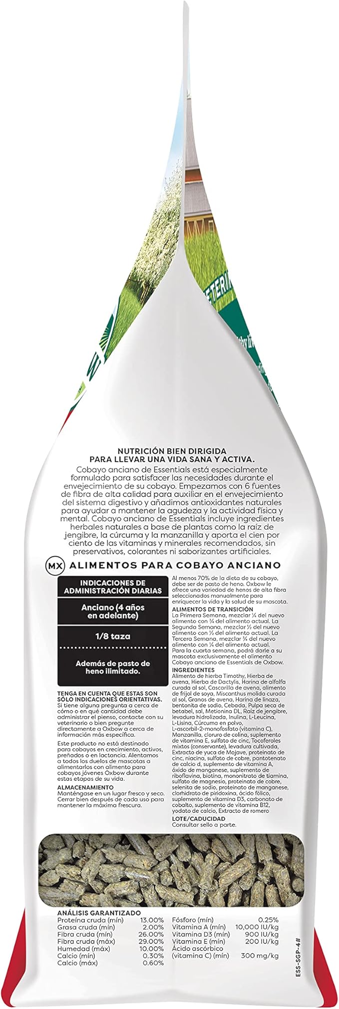 - COMPLETE VITAMIN & MINERAL SUPPORT: Oxbow Senior Guinea Pig delivers 100% of the essential vitamins & minerals guinea pigs need, including stabilized Vitamin C in every pellet; a clean senior cavy diet with no artificial colors, flavors, or preservatives.