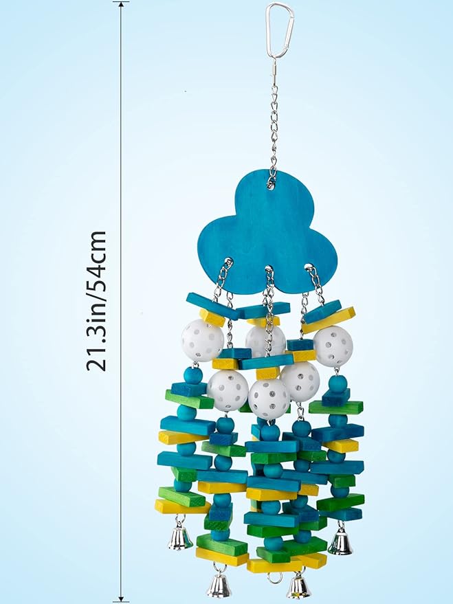 - Unique Design: Our parrot toys for large birds have a blueberry-like design with many colored wooden blocks and plastic beads for the parrots to chew on, and the bell at the bottom is a great way to attract their attention and avoid damage to furniture or vegetable gardens.