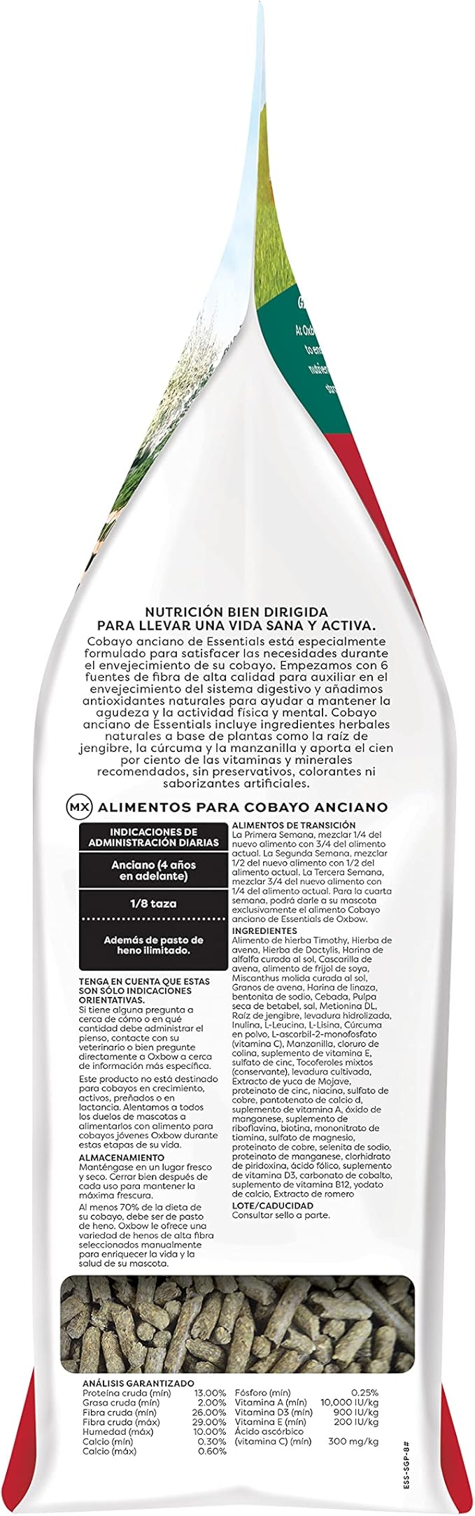- COMPLETE VITAMIN & MINERAL SUPPORT: Oxbow Senior Guinea Pig delivers 100% of the essential vitamins & minerals guinea pigs need, including stabilized Vitamin C in every pellet; a clean senior cavy diet with no artificial colors, flavors, or preservatives.