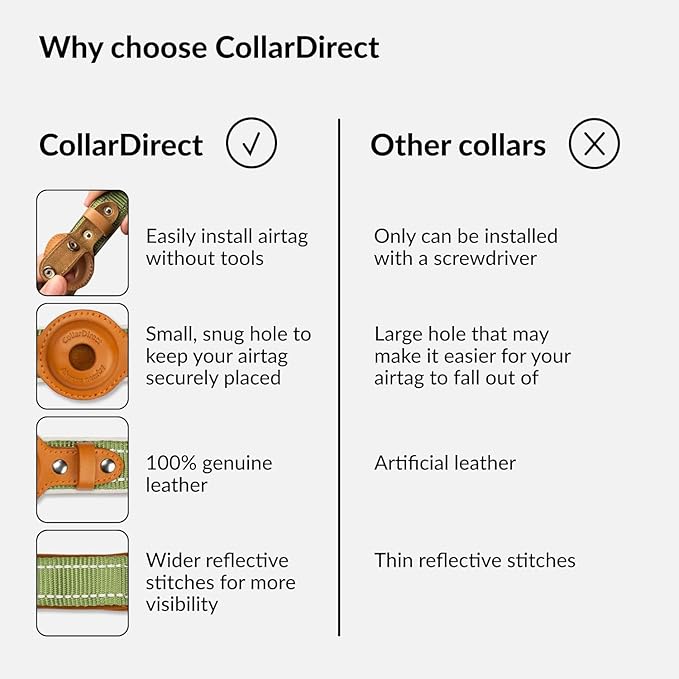 - Designed for Apple AirTag - This GPS Dog Collar was designed to fit the Apple AirTag. Our airtag dog collar has a double snap and small opening to ensure your airtag's placement. Plus, the dog tracker collar with gps has reflective stitching for nighttime walks.