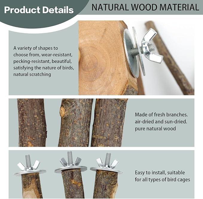 - Varied Shapes for Enrichment - Includes naturalistic branches, forks, and platforms to create stimulating climbing environments that mimic birds' wild habitats.