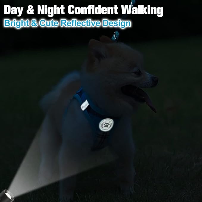 BEAUTYZOO Small Dog Harness and Leash Set,Step in No Chock No Pull Soft Mesh Dog Harnesses Reflective for Extra-Small/Small Medium Puppy Dogs and Cats, Plaid Dog Vest Harness for XS S Pets, Blue XXS