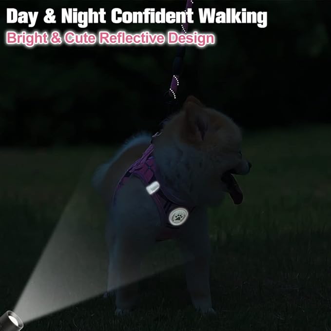 - _Easy on and Lightweight---STEP IN, CLIP & GO! Effortlessly slip this easy-to-wear vest harness on and off your puppy in seconds. 1) Put the pet's front legs in the step-in harness. 2) Lift the small dog harness and lock the buckle. 3) Adjust the chest size and clip leash on the D ring. Now let's have a walking with your pet dog!