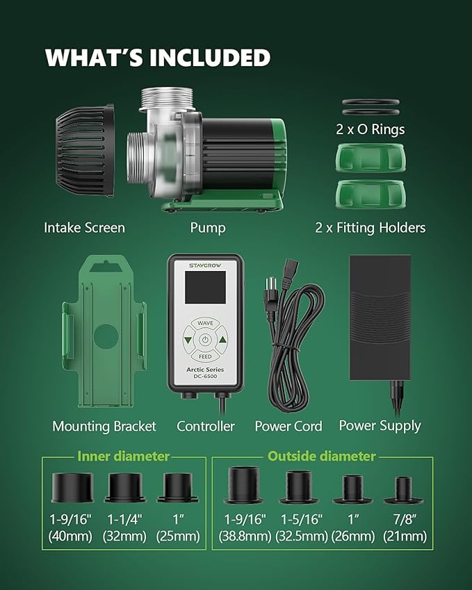 - What You Get: Aquarium water pump, controller, power supply, pump accessories. STAYGROW is so confident in our high-quality return pumps that we always stand by our products