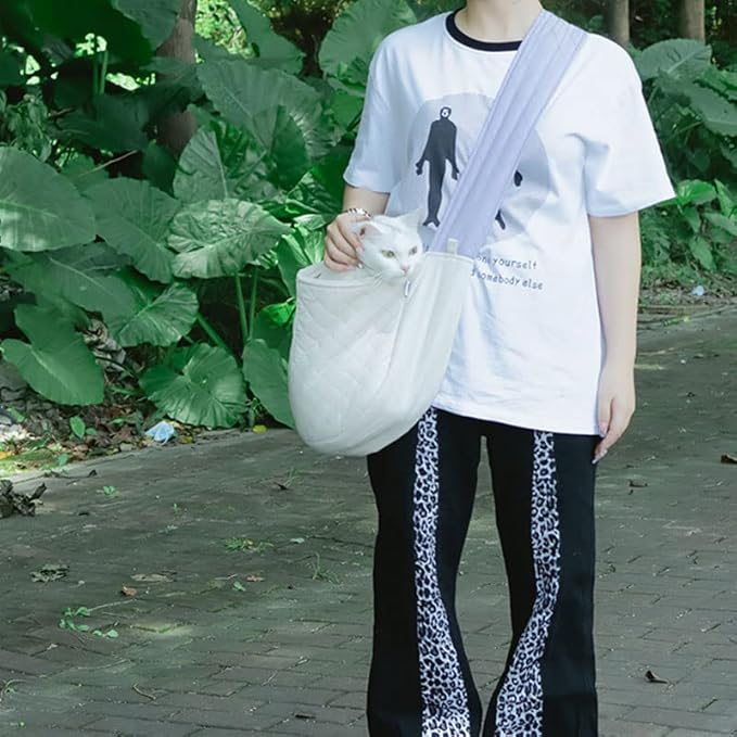 Cat Carrier Small Dog Sling Carriers Hands Free Soft Reversible Pet Travel Bag Cozy Pouch and Tote Bag for Pets, Cats, Small Dogs Puppy Backpack for Outdoor Travel(White)