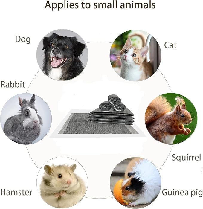 - Reduce Odor:Guinea pig pee pads 100 count contains activated carbon.Rabbit cage liner disposable is made from carbon fiber mixed layer can eliminate the odor in urine.Rabbit pee pads for cage will make your home less smelly