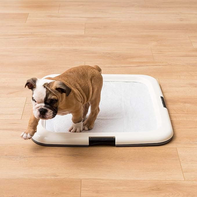 - The training pad holder has 4 non-skid rubber feet to protect floors from scratches and hold the tray firmly in place. High polish finish makes cleaning easy. (IRIS USA Pee Pads Square Pet Training Pad Holder)
