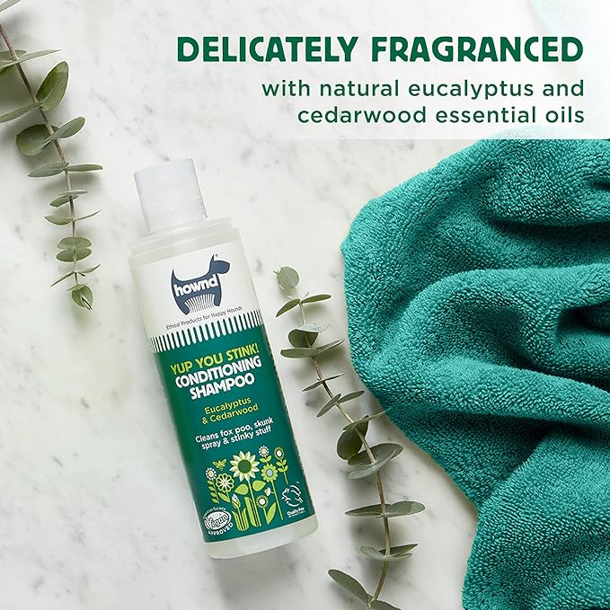 - Reduces Shedding & Flakes: Formulated to minimize dandruff flakes and shedding, especially when used alongside Hownd's Yup You Stink Shampoo. This feature makes grooming easier, with fewer tangles and a smoother brushing experience.