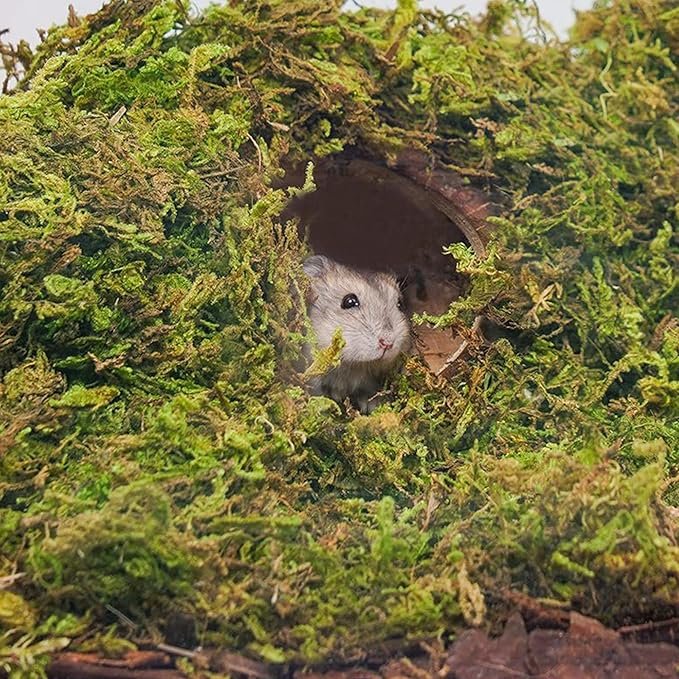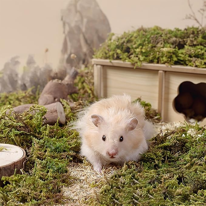 - Safe & Clean: Our natural moss is carefully selected and classified, clean and safe with natural smell. if you have items that may be unsafe for hamster, such as a wooden bridge that has gaps, you can take some and put it in between to ensure safety.