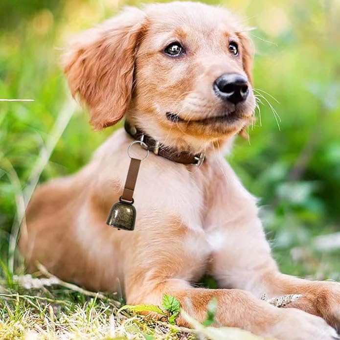 4 PCS Loud Bear Bells with Leather Button Strap Dog Collar Bell Pet Bells Tracker Noise Maker Anti-theft Bell Strap and Pet Anti- Lost Silver Pendant ID Tags for Pet Pendant Accessories Decorative
