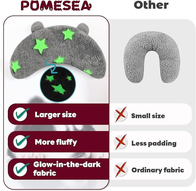 Dog Calming Pillow, Glow in The Dark Soft Dog Neck Pillow, U-Shaped Pillow for Dogs & Cats, Machine Washable Pet Calming Toy, Joint Relief Sleeping Improve for Pets (Gray, M)
