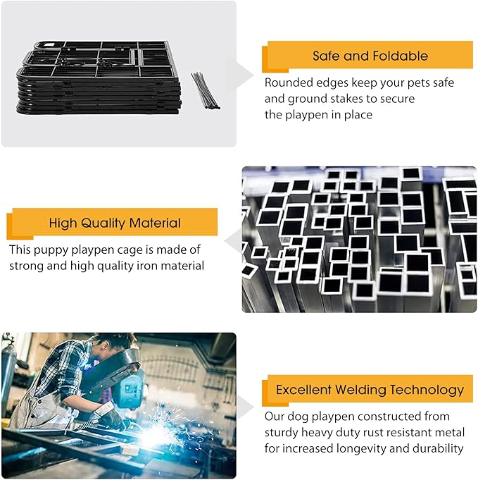 BestPet | Dog Playpen | 24 Inch, 32 Panels | Heavy Duty Metal Pet Exercise Pen | Indoor Outdoor Fence Panels | Rust-Resistant, Removable, Tool-Free Setup | Anti-Skid, Expandable Design