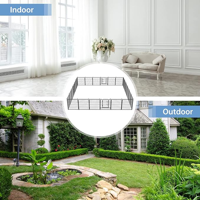 - USE AS EXTENSIONS OR REPLACEMENTS: These strong durable metal fence panels easily connect to expand your existing dog playpen or replace damaged sections, keeping your pet’s area safe and secure.