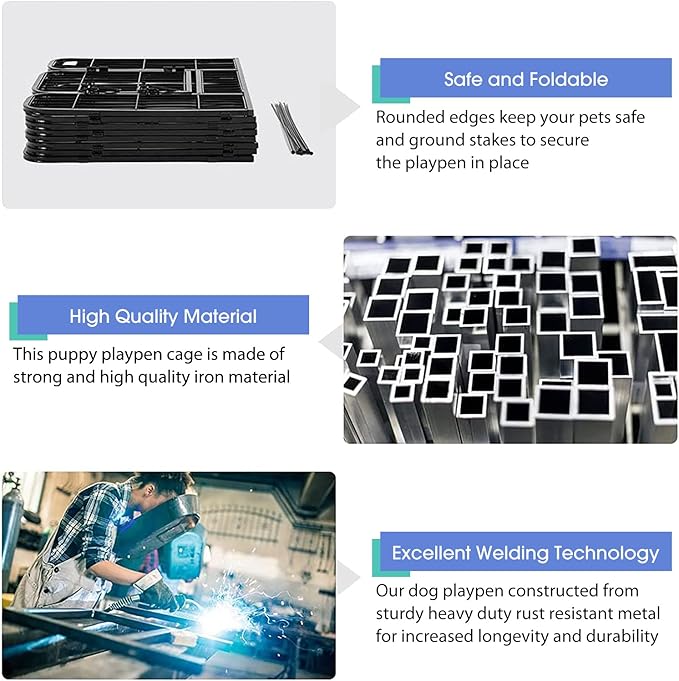 BestPet | Dog Playpen | 32 Inch, 32 Panels | Heavy Duty Metal Pet Exercise Pen | Indoor Outdoor Fence Panels | Rust-Resistant, Removable, Tool-Free Setup | Anti-Skid, Expandable Design