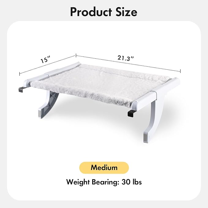 - No Suction Cups Dropping Risk: This cat bed is fixed by the metal hook hanging on the place. It utilizes the principle of physics balance. No suction cups are needed for the installation and fixation, of great safety.