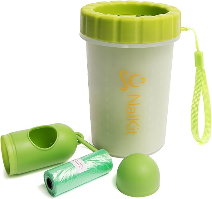 Paw Cleaner for Dogs, The Ideal Foot Washer That demolishes Dirt for Medium to Large Dogs. This paw Scrubber Comes with 1 roll Poop Bag and Carrier for Best Dog Cleaner