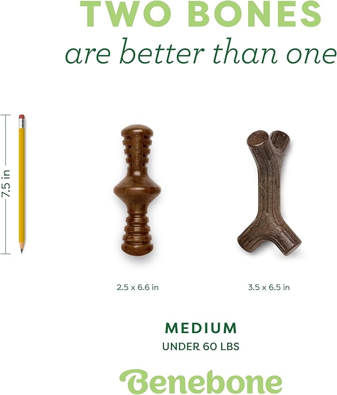 Benebone 2-Pack Maplestick/Zaggler Durable Dog Chew Toys, Real Maplewood, Real Bacon, Made in USA Medium