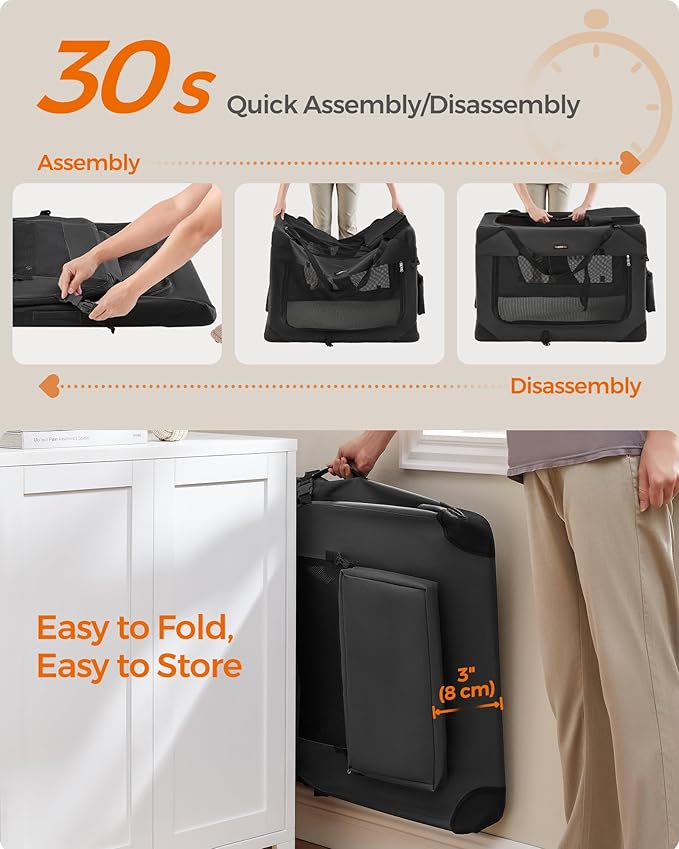 Feandrea 32 Inches Collapsible Soft Dog Crate, Portable Travel Dog Crate for Indoor and Outdoor Use, Dog Carrier Kennel with Safety Zippers, for Living Room, Car, Travelling, Camping, Black UPDC80H