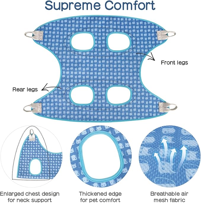 - Comfortable Fabric: The dog hammock for grooming is made of premium air mesh fabric for excellent breathability, brings your pets comfortable feeling during their grooming or trimming time.