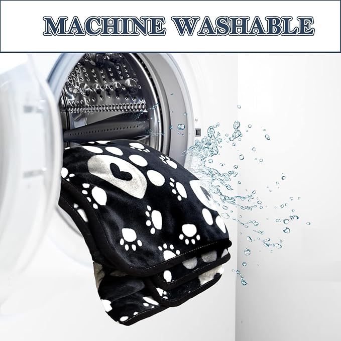 Dog Blanket, Soft Fleece Dog Blankets for Large Dogs, Fluffy Flannel Pet Cat Puppy Blanket Mat Cover for Bed Couch, Cute Paw Print Throw Blanket for Dogs, Black 60"X50"