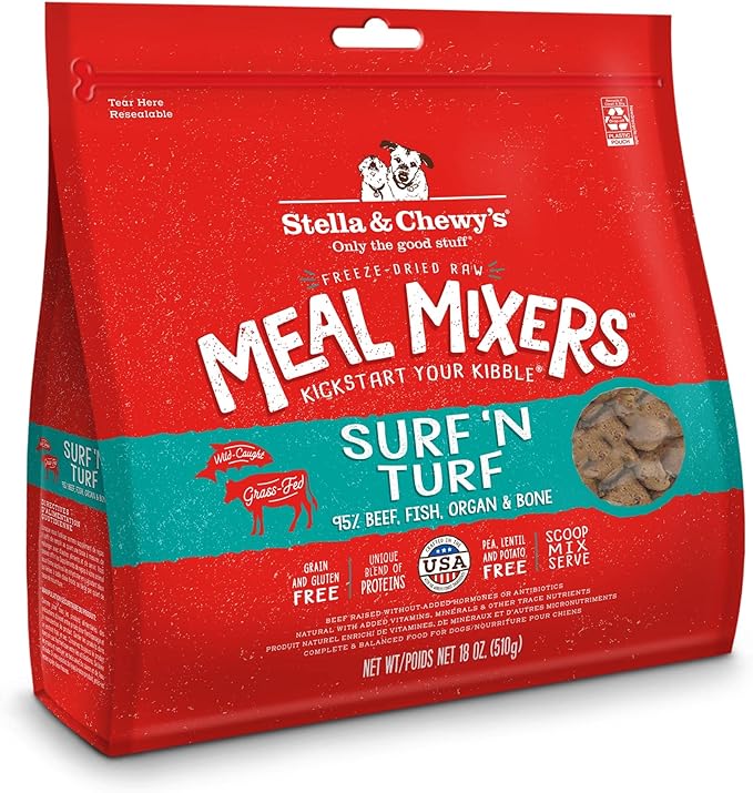 Stella & Chewy's Freeze Dried Raw Surf & Turf Meal Mixer Dog Food Topper for Small & Large Breeds Grain Free, Protein Rich Recipe 18 oz Bag