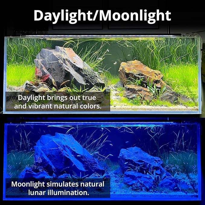 - Day+Night Cycle: The fish tank light can perfectly simulate the natural day and night cycle, easy to start. Time and color spectrum can also be customized for your exact needs