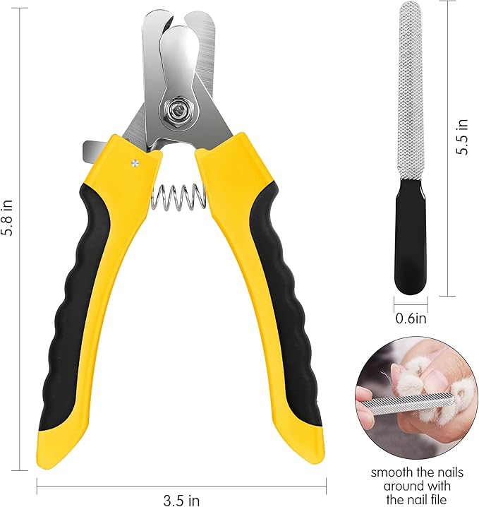 Dog Nails Clippers Trimmer with Safety Guard to Avoid Over-Cutting, Razor Sharp Blades with Bonus Dog Nail File, Cat Claw Clippers with Sturdy Non Slip Handles for Pets Dog Cat?Yellow & Black?