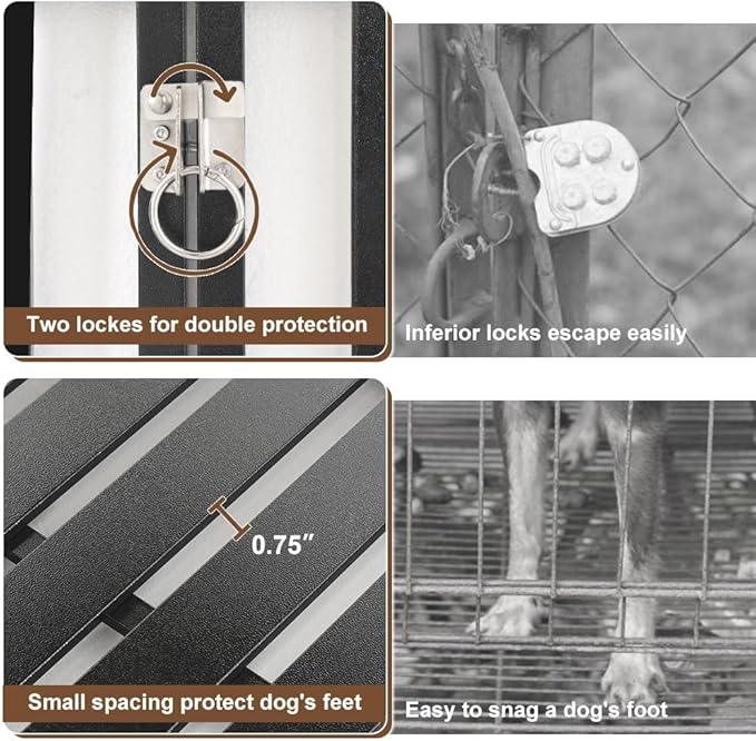 - Anti-escape Heavy Duty Dog Crate: Decorative dog crate furniture made of sturdy heavy duty steel tubes and solid wood board. Front door is reinforced with 0.8 inch square tubes. Equipped with 4 double-guarded safety lockes, not easily damaged and prevent your dog from escaping. The entire heavy duty dog crate is abrasion-resistant and bite-resistant, ensuring that high anxiety dogs rest safely inside