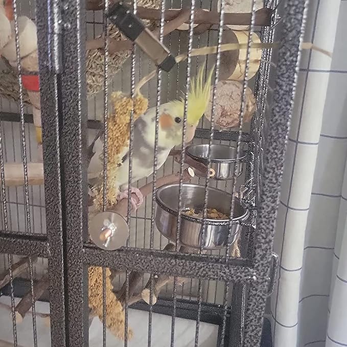 - 【EASY TO CLEAN】Just remove the clamps on the side of bird feeder cups from cage whenever you want to clean.Bird bowl stainless is easy to clean with water and bird dishes for cage doesn't take your much time and energy.Parrot feeding dish is also a wonderful gift for bird and parrot lovers.