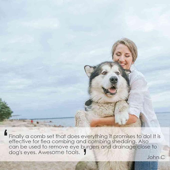 - THOUGHTFUL SET: Our pet grooming set includes 5 flea combs, the stainless steel teeth are super close together to easily pull out anything extra from pet’s coat. Perfect for straightening out knotted tangles hair, as well as finishing and fluffing