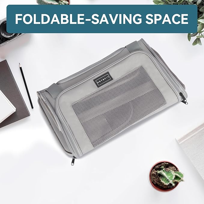 PETSFIT Cat Carrier Airline Approved, Soft Carrier for Small and Medium Cats Under 12 Lbs, Soft Cat Travel Bag, Kitten Carrier with Extendable Mat, Grey