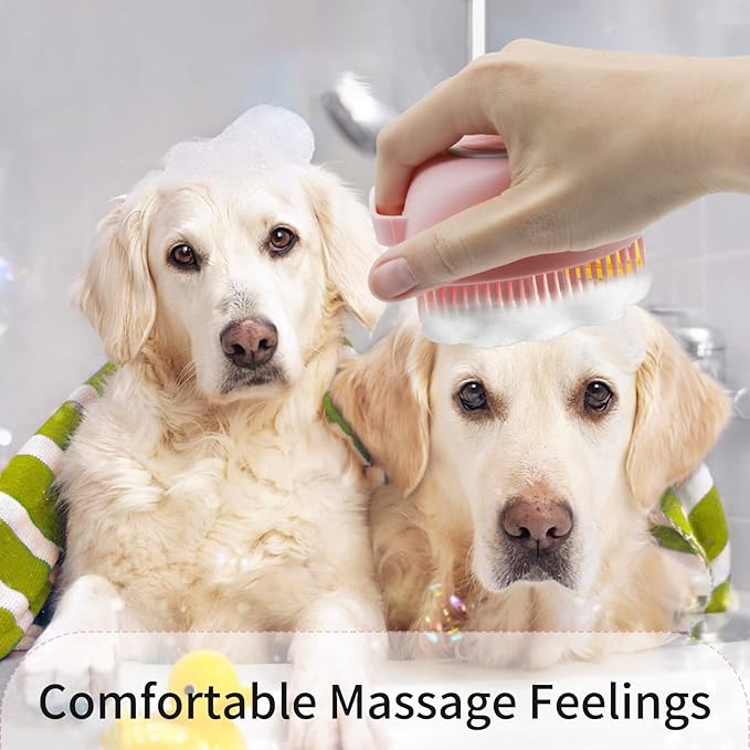 WishLotus Pet Bath Brush, Soft Silicone Cat Grooming Brush Dog Bath Massage Brush Shampoo Dispenser Heart-Shaped Multifunctional Bath Brush for Pet Bath Shower Accessories (Heart-Pink)