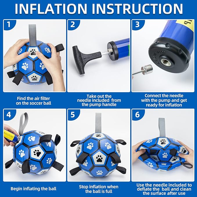 - 🐶 ⚽Dog Soccer Ball Improve Human Well-Being: Watching your dog chasing, running, playing and other activities can not only bring people happiness, but also reduce stress and tension, and enhance human well-being.Outdoor Dog Toys Improve your dog's physical fitness, thereby improving their physical fitness and endurance.