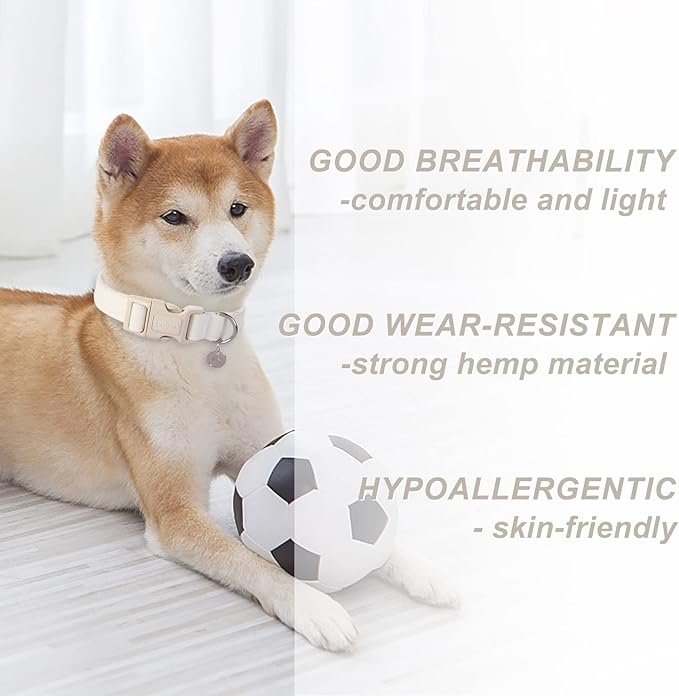 DOGWONG Cotton Hemp Dog Collar, Heavy-Duty Adjustable Soft Natural Fabric Pet Collar - Cute Wedding Puppy Necklace for Small to Large Dogs