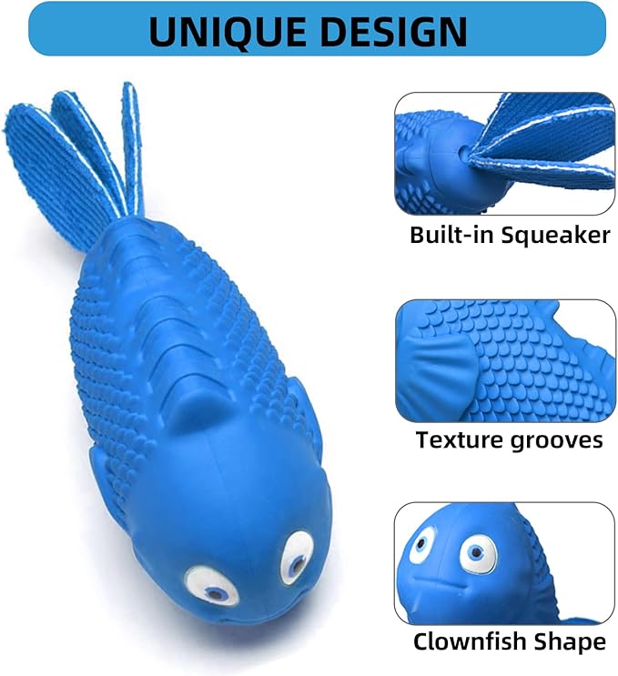 - Funny Dog Squeaky Toys: Adopted Clownfish-shape in design, the toys for dogs greatly stimulate dog's curiosity, indulging them into the chewy urge. When being squeezed or chewed, our squeaky dog toys can make funny sounds with a built-in squeaker, bringing more fun and excitement to dogs. To avoid dog toys for aggressive chewers being bitten to pieces, proper supervision is necessary. Hurry up and take one for your furry friends as gifts
