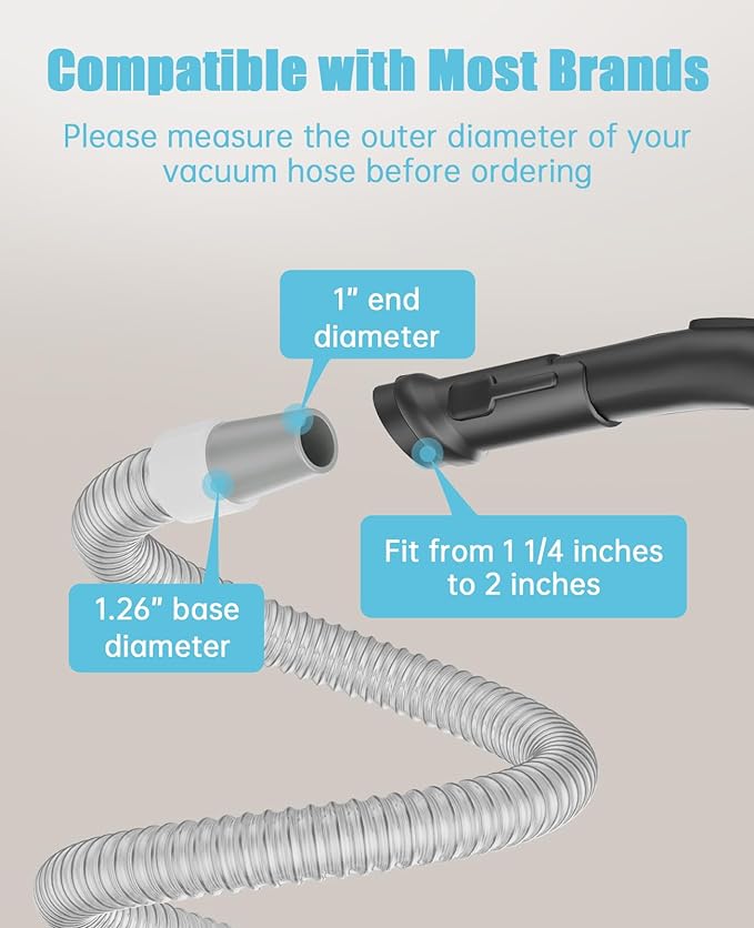 - Widely Applicable:This dog brush vacuum attachment can fit 1-1/4-Inch to 2-Inch Hoses diameter household vacuum cleaners. Please measure the outer diameter of your vacuum hose before ordering