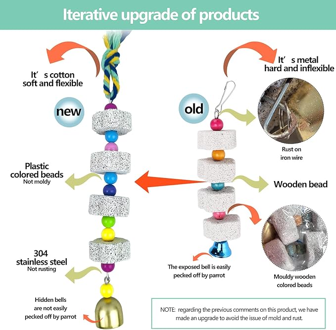 - [Exquisite design]:With a porous mineral stone and colorful beads,Chewing toys are not only well-designed,attractive to pets,but also environmentally friendly.It is made of natural materials to ensure that it does not harm your pet.
