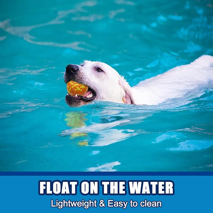 • 🥎【Interactive Dog Toys for Fetch Game】Great to throw or use with ball launchers, these balls are perfect for fetching. Whether you're in the yard or in swimming pool, even at the beach or in the snow. Our balls enrich the human-animal bond. They can float on the water, are lightweight and bright colorful that will be easy to toss and find.