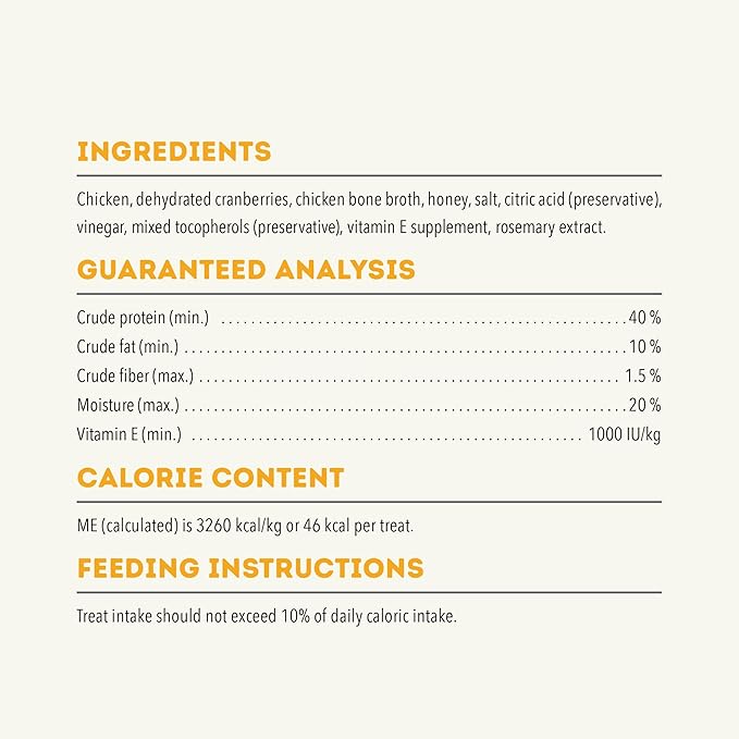 • ACANA dog treats balance protein-rich animal ingredients with other wholesome ingredients, including sweet honey to create a soft, chewy texture your dog loves